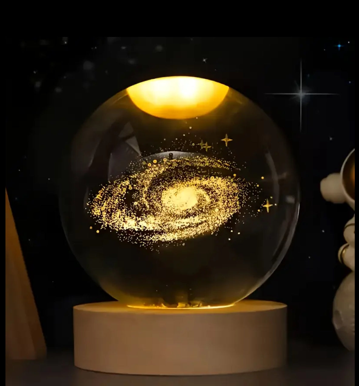 This crystal ball night light is a simple yet eye-catching piece that brings a bit of the galaxy into your space. Inside the clear glass globe, a detailed 3D model of the solar system is laser-etched, giving it a floating, almost holographic look — especially when lit up.