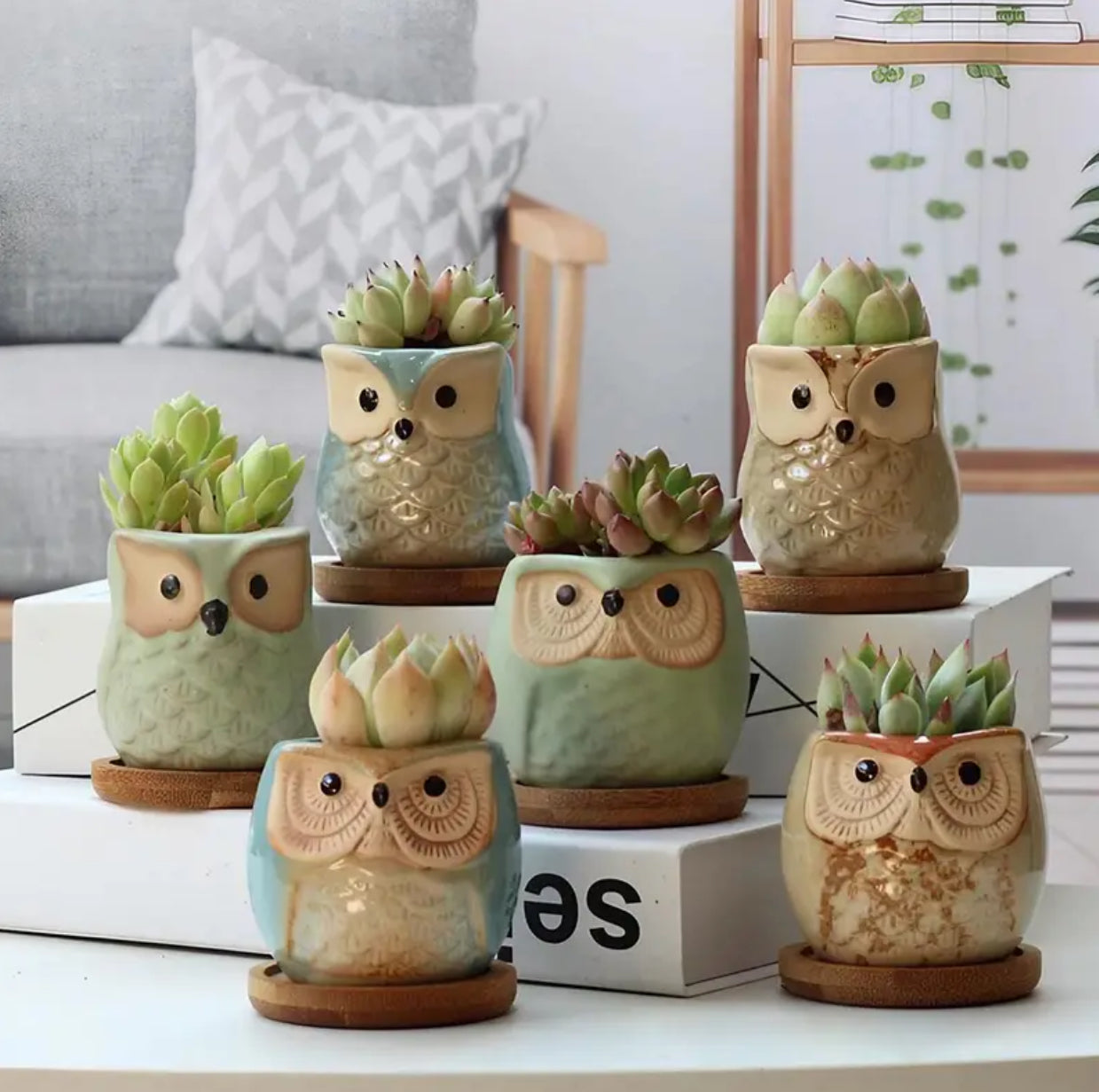 Add a touch of whimsy and charm to your home or office with this adorable 6-piece set of Owl Succulent Plant Pots and saucers. Made from high-quality ceramic and hand-painted with unique owl designs, each pot is a delightful blend of artistry and function. Perfect for succulents, small cacti, or mini houseplants, these pots bring life and personality to any space.