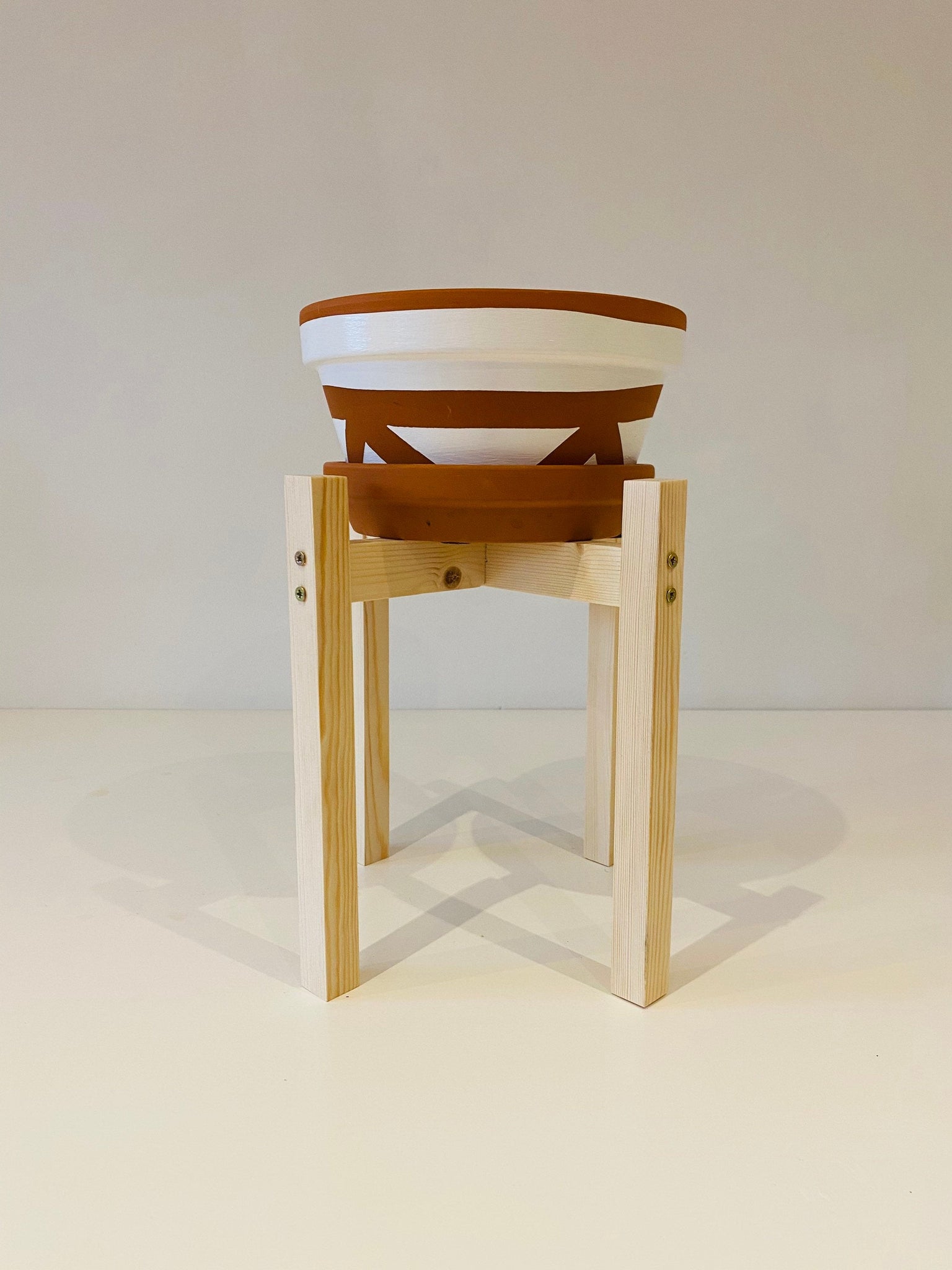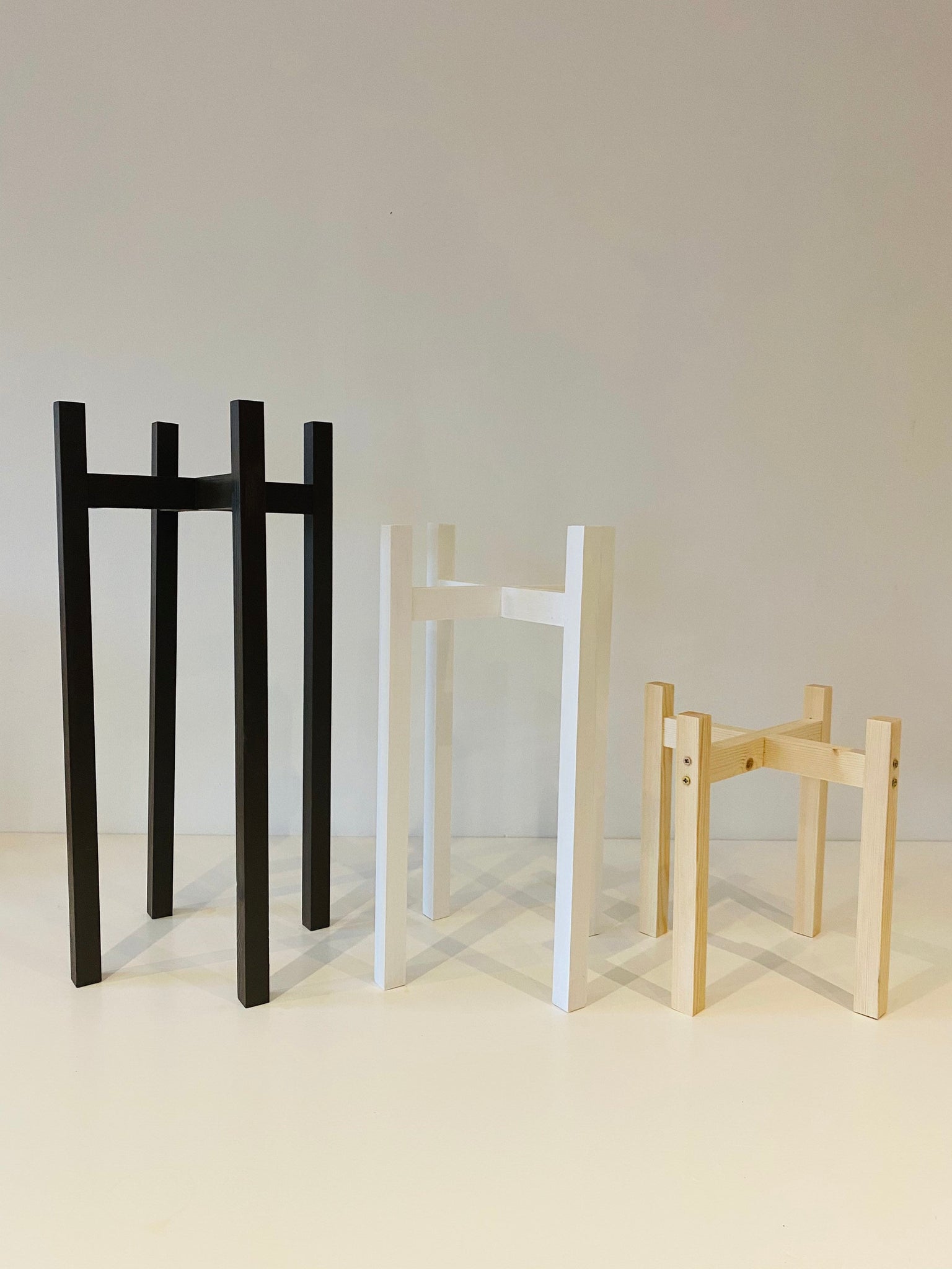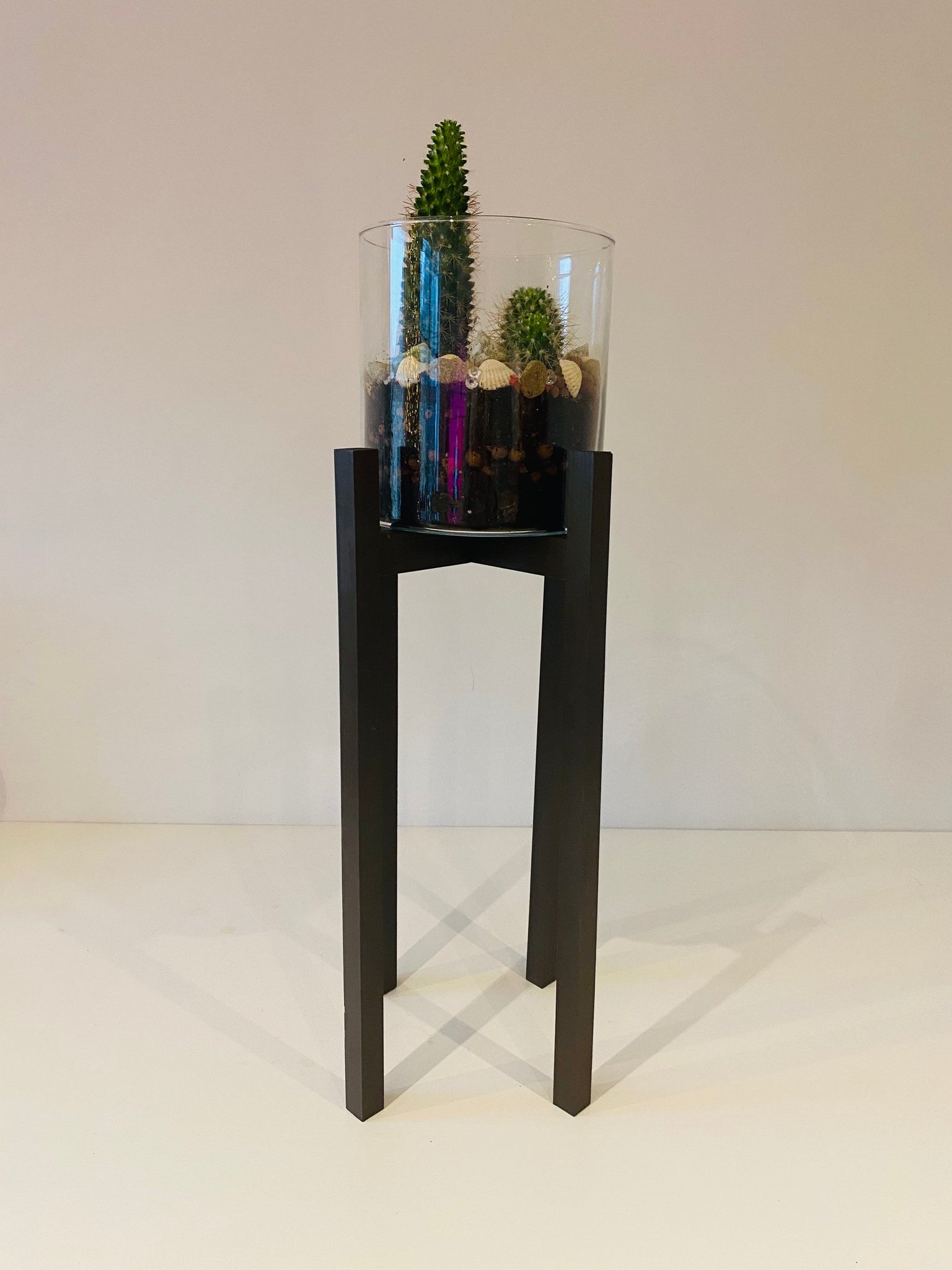The stand for sale is the slim leg of 2cm of width (very-very steady) squared leg design and comes in many options of shapes, this type of stand is very-very slick and has a higher tier (the pot is going to seat at 46cm high if you choose a 50cm leg) compared to my other stands and comes in many sizes of height, width and colours and is made to order every time.