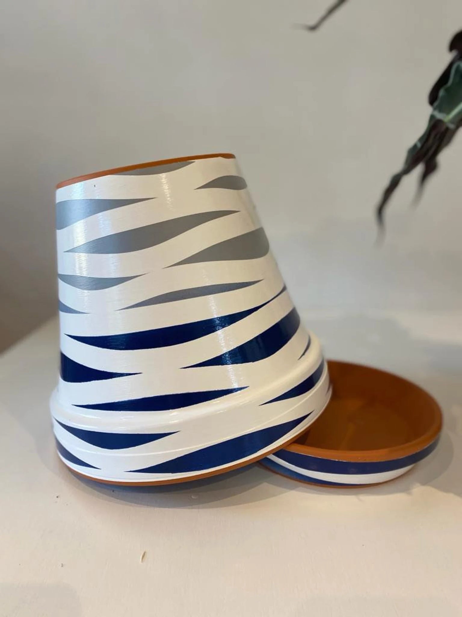 The pots are hand painted in a very small workshop in London UK by an Expert Italian craft and his small team handmade to perfection so you can enjoy them every time you look at them bringing up the beauty of your plants and enhancing your living space 😊