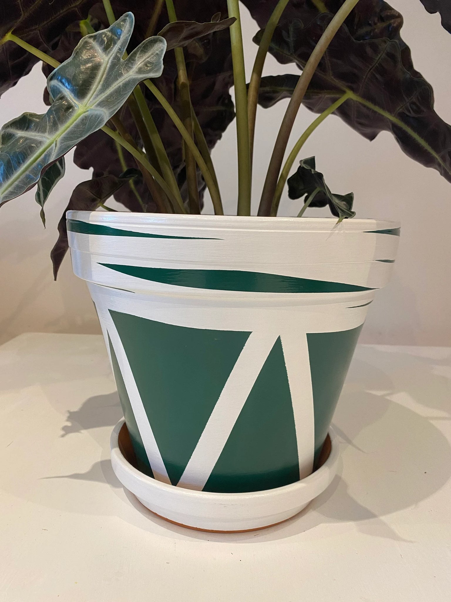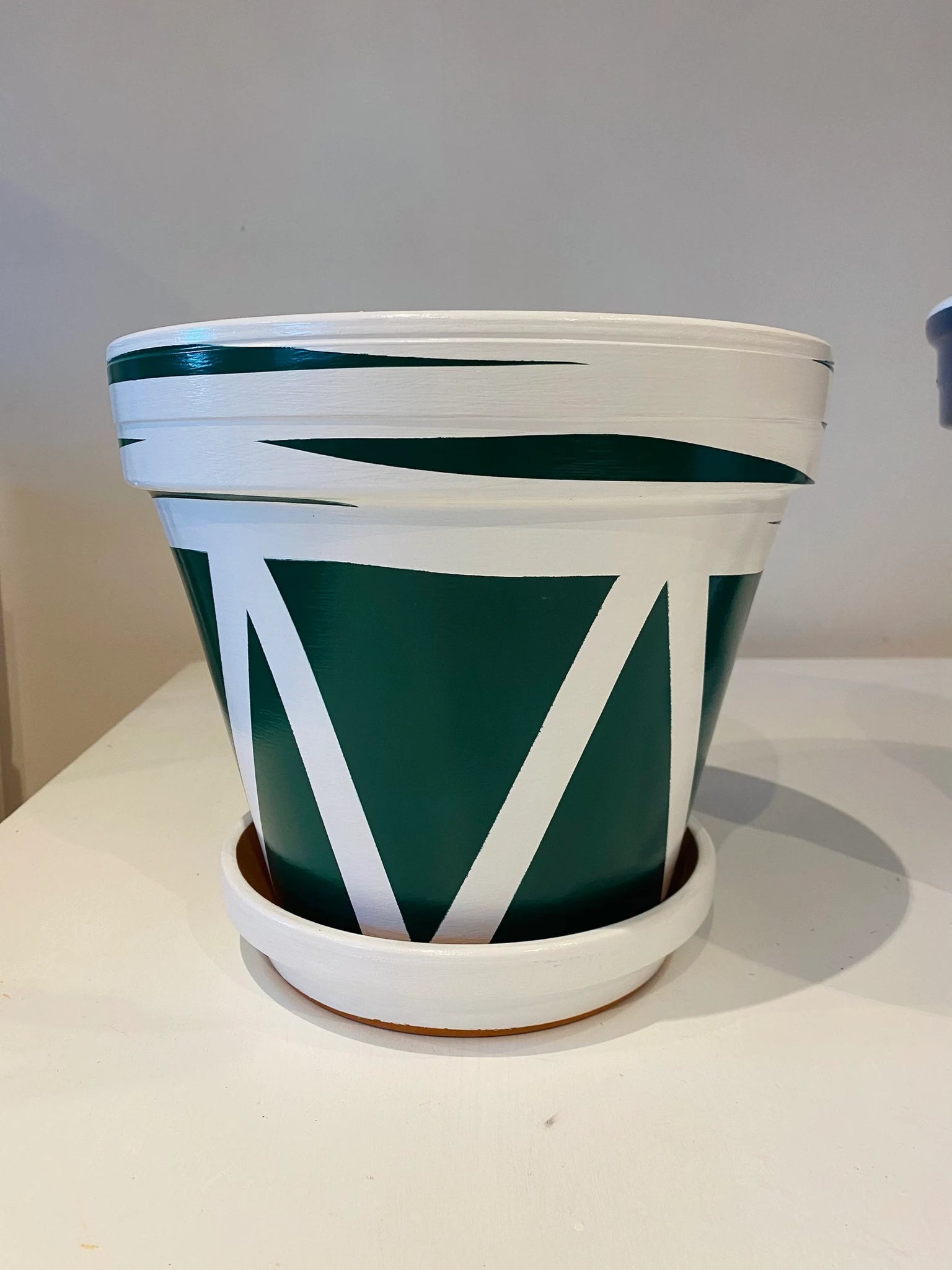 These pots are handpainted In large double waves and are perfect for your medium to large plants or any other home indoor plants and thanks to their shape which is wide at the top can host quite large plants which makes them also great for repotting. The pots are organic terracotta 😃 .