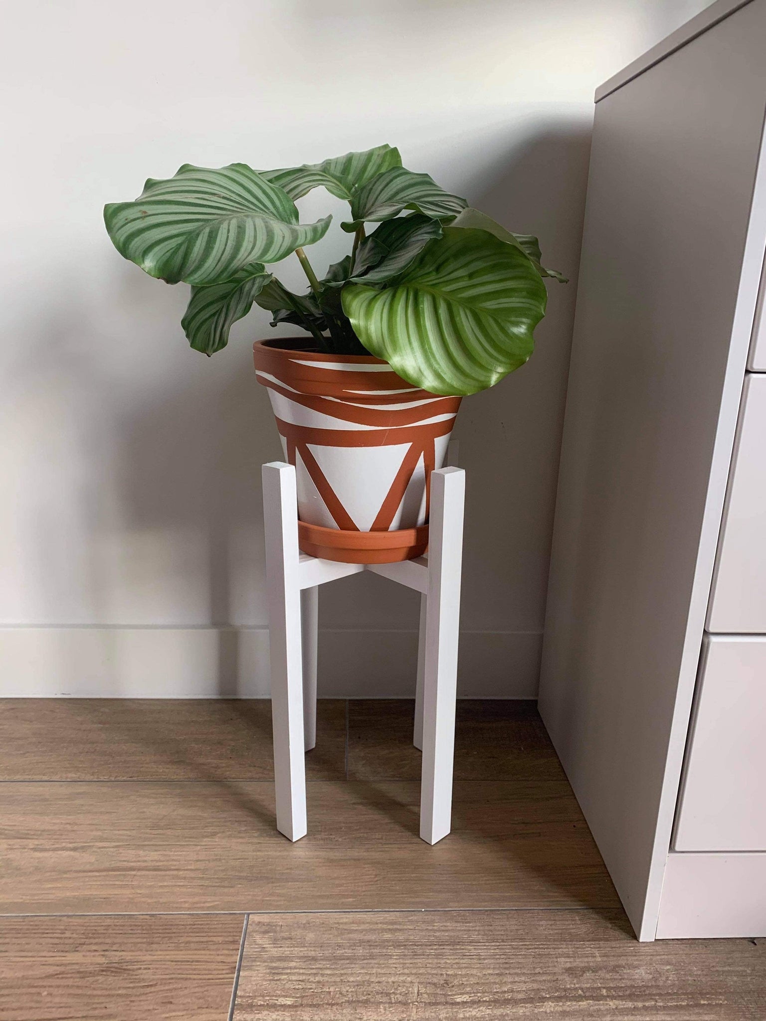 The stand is hand cut , hand painted and hand assembled, we at PlantManiax are proud of what we do and this line of stands its just one of the many we do. The stands are made to support weight and they come with pads under the feet to make sure the floor does not get scratched whether is carpet, wood floor or tiles.